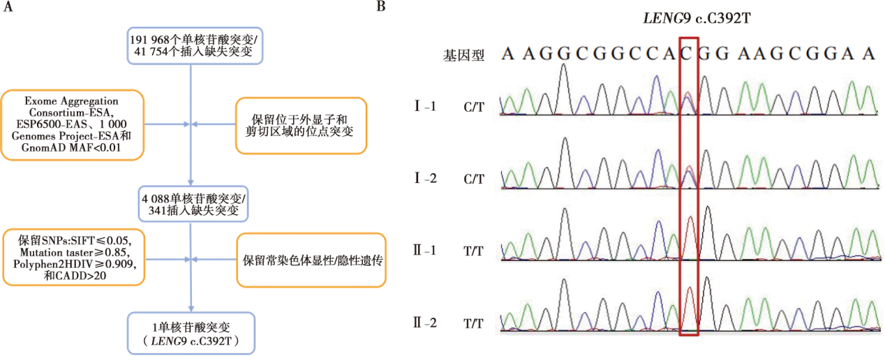 关键词: 先天缺牙, 全外显子组测序, LENG9