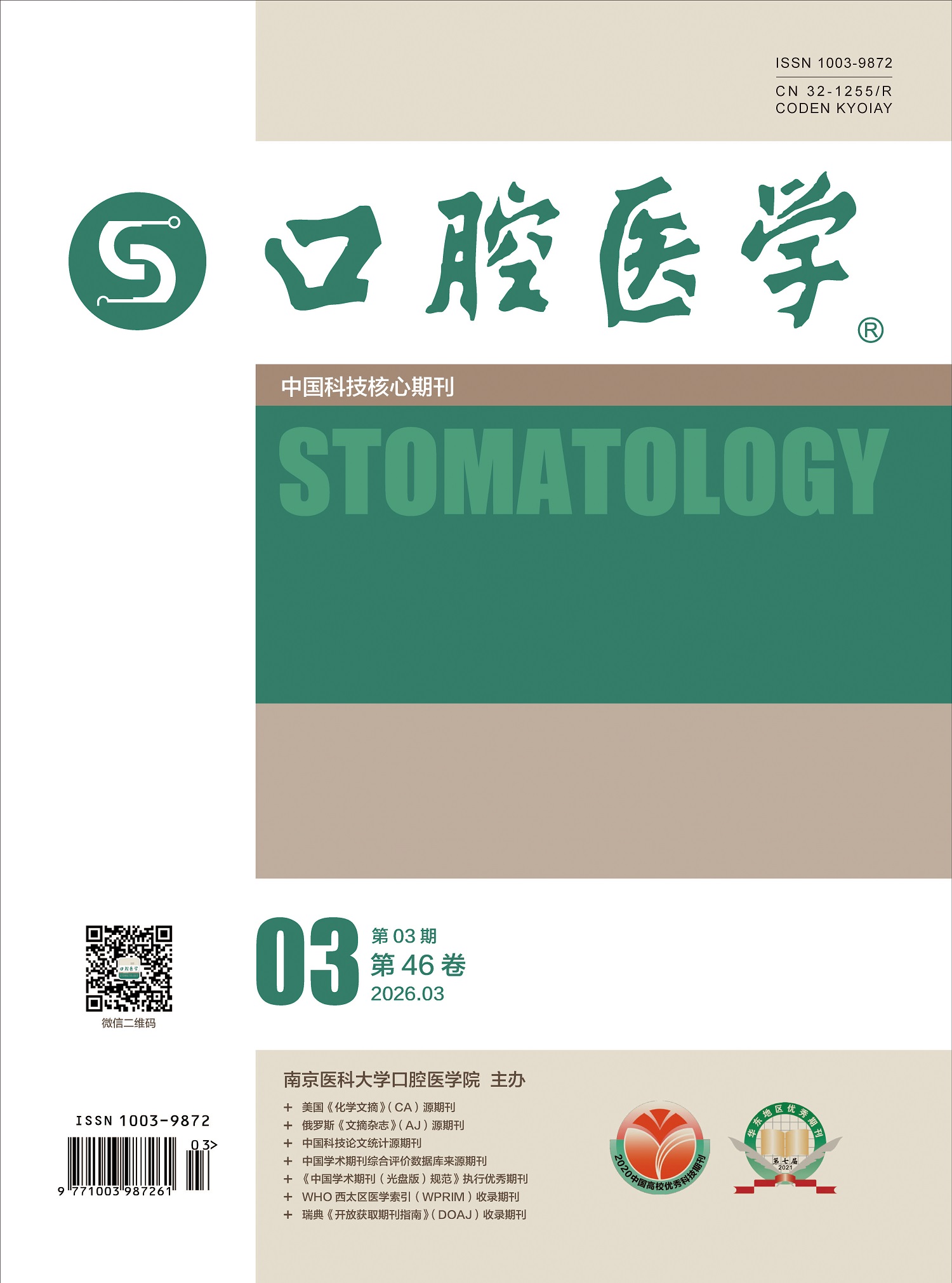《口腔医学》杂志创刊于1981年,至今已有40多年的历史,是中国第二种综合性口腔医学期刊。本刊由南京医科大学口腔医学院主办,山东大学口腔医学院、同济大学口腔医学院、江苏省常州口腔医院、浙江大学医学院附属口腔医院和浙江口腔医学会联办。